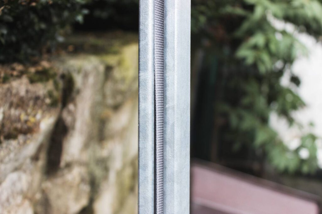 Die speziell angefertigten Führungsschienen und Metallstangen sind komplett feuerverzinkt.