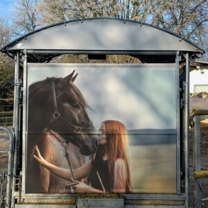 Es besteht die Möglichkeit kundenspezifische Druckmotive auf die Plane aufzubringen.